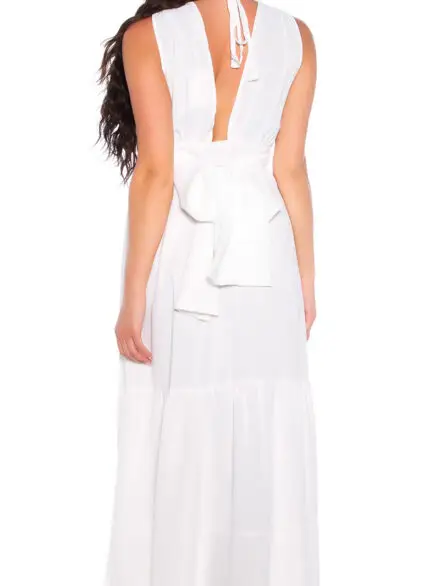 Elegantné biele maxi šaty s výstrihom do V